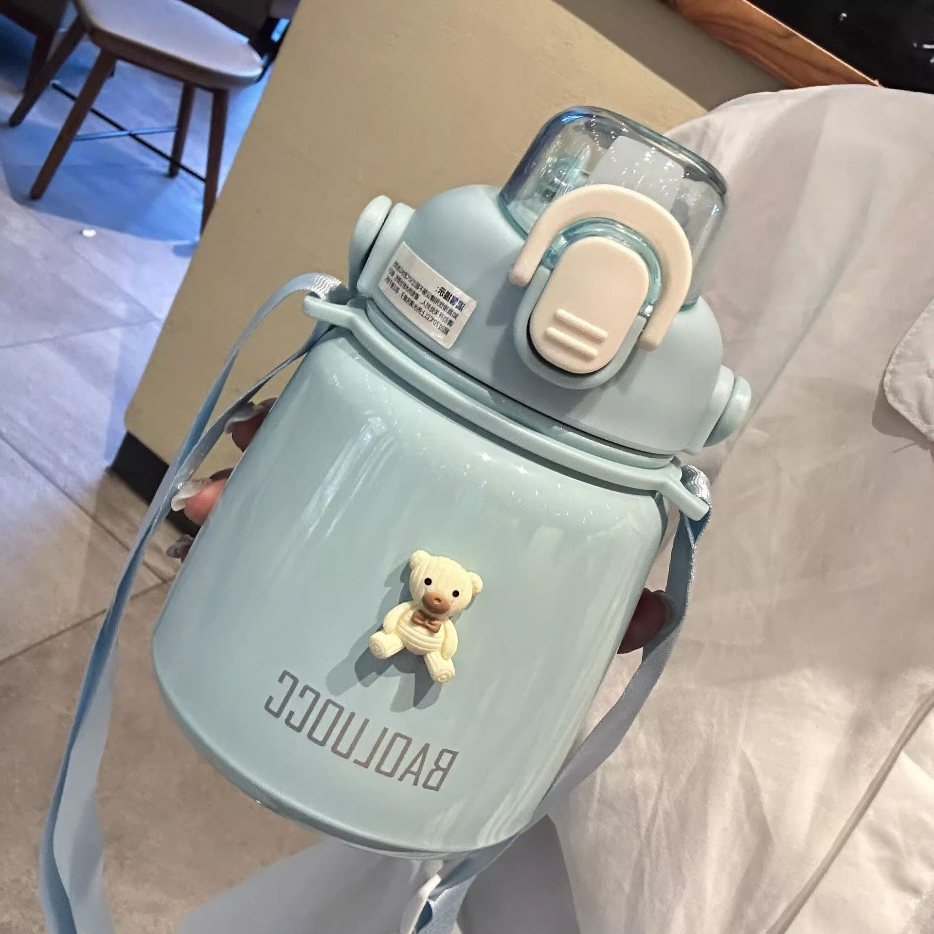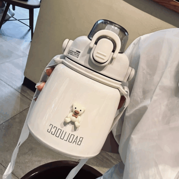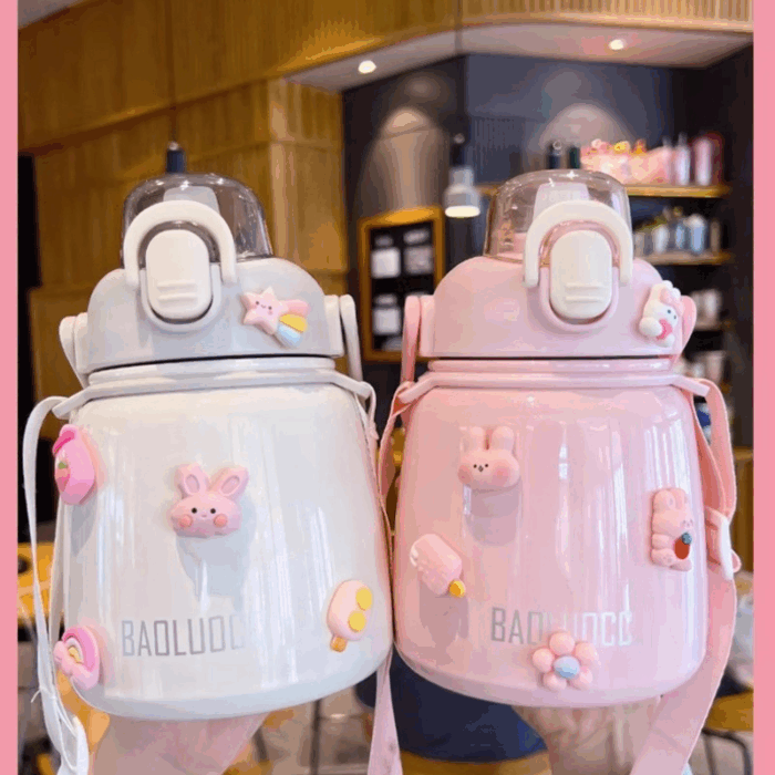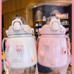 Large capacity 304 stainless steel insulated cup, popular and stylish women’s large belly water cup, double drinking straw, children’s pot